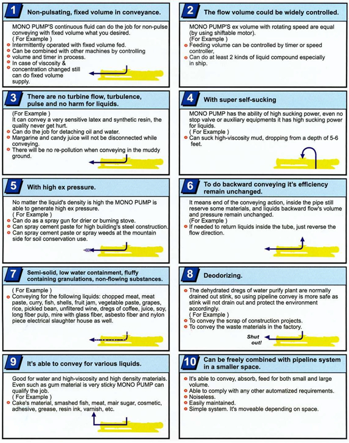 MONO SPIRAL PUMP JN-TOA TYPE FEATURES