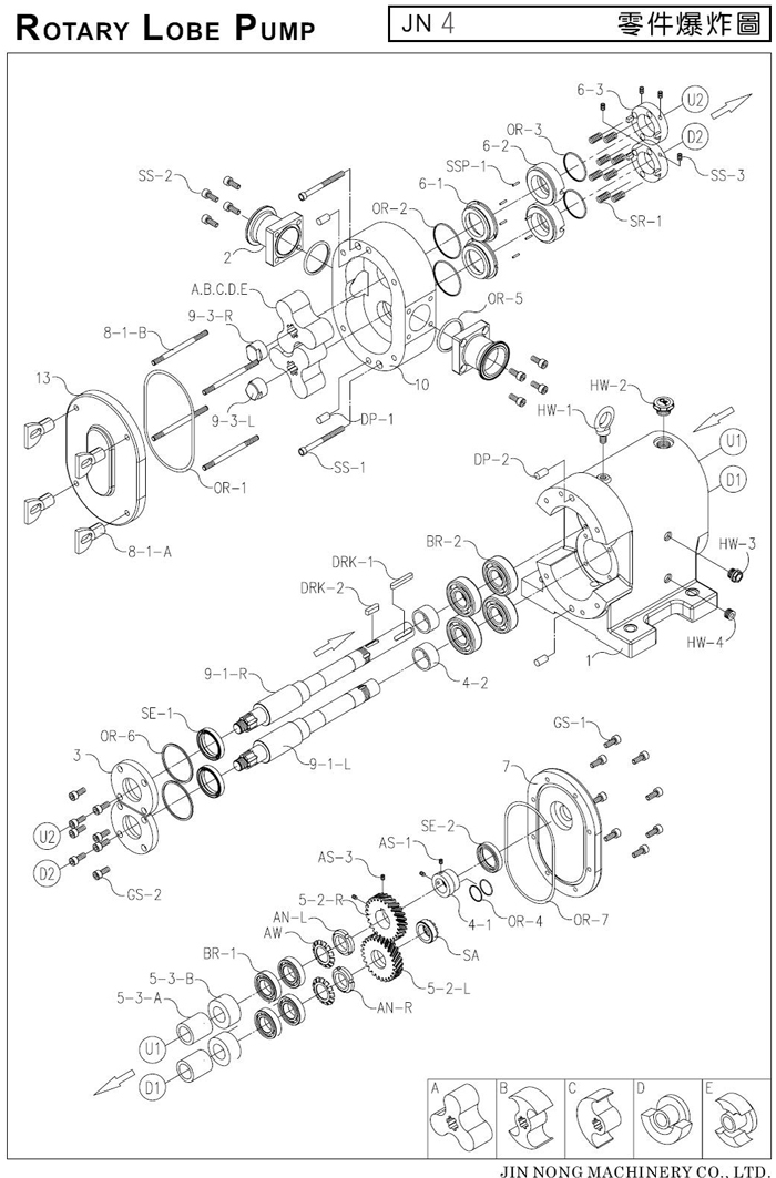 ROTARY LOBE PUMP JN-4-B-497 EXPLODED DRAWING