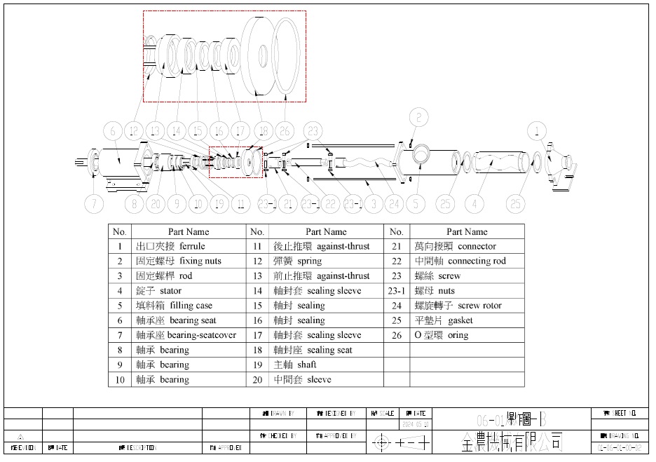 螺旋泵浦 迴轉軸各斷面詳細圖