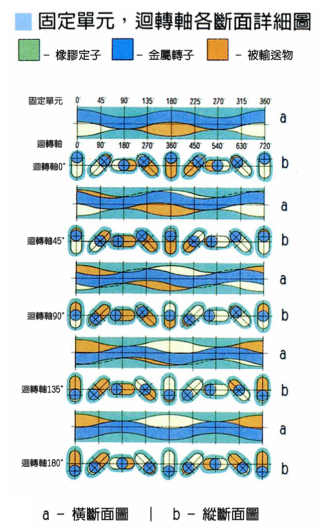 螺旋泵浦 迴轉軸各斷面詳細圖