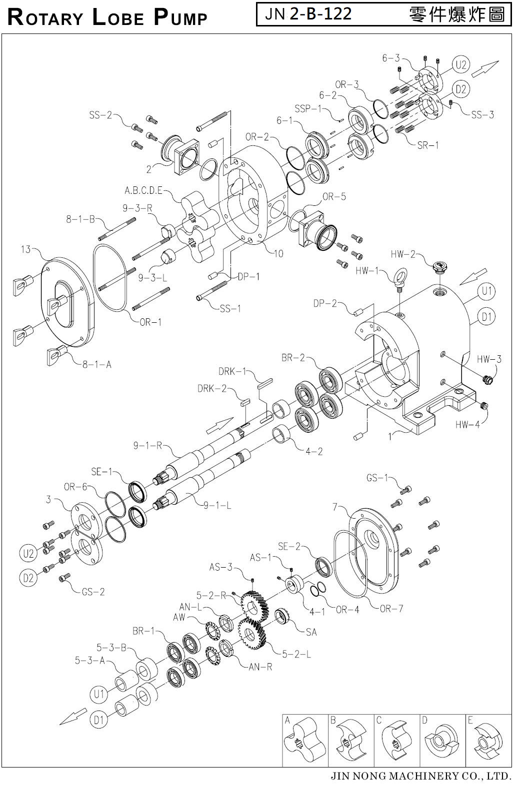 金濃衛生級黏稠泵浦-JN-2-B-122零件爆炸圖