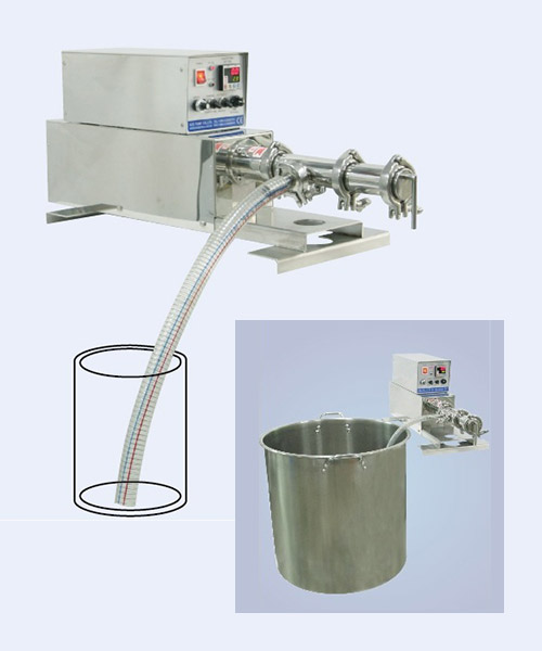- 可手動作業。亦可連接他種機械進行自動充填